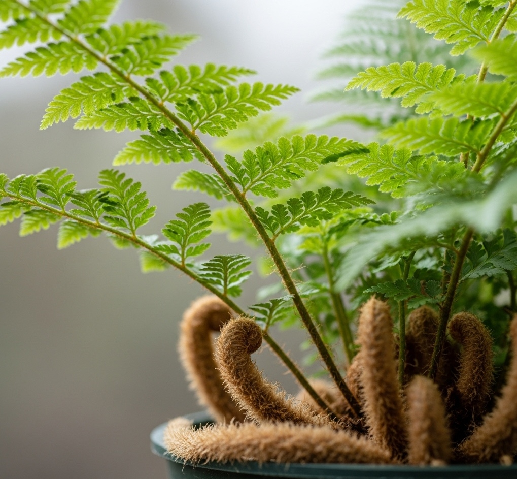 These ferns are named for their charming, fuzzy rhizomes that indeed resemble a rabbit’s foot. They are perfect for hanging baskets or mounting where their rhizomes can trail freely.