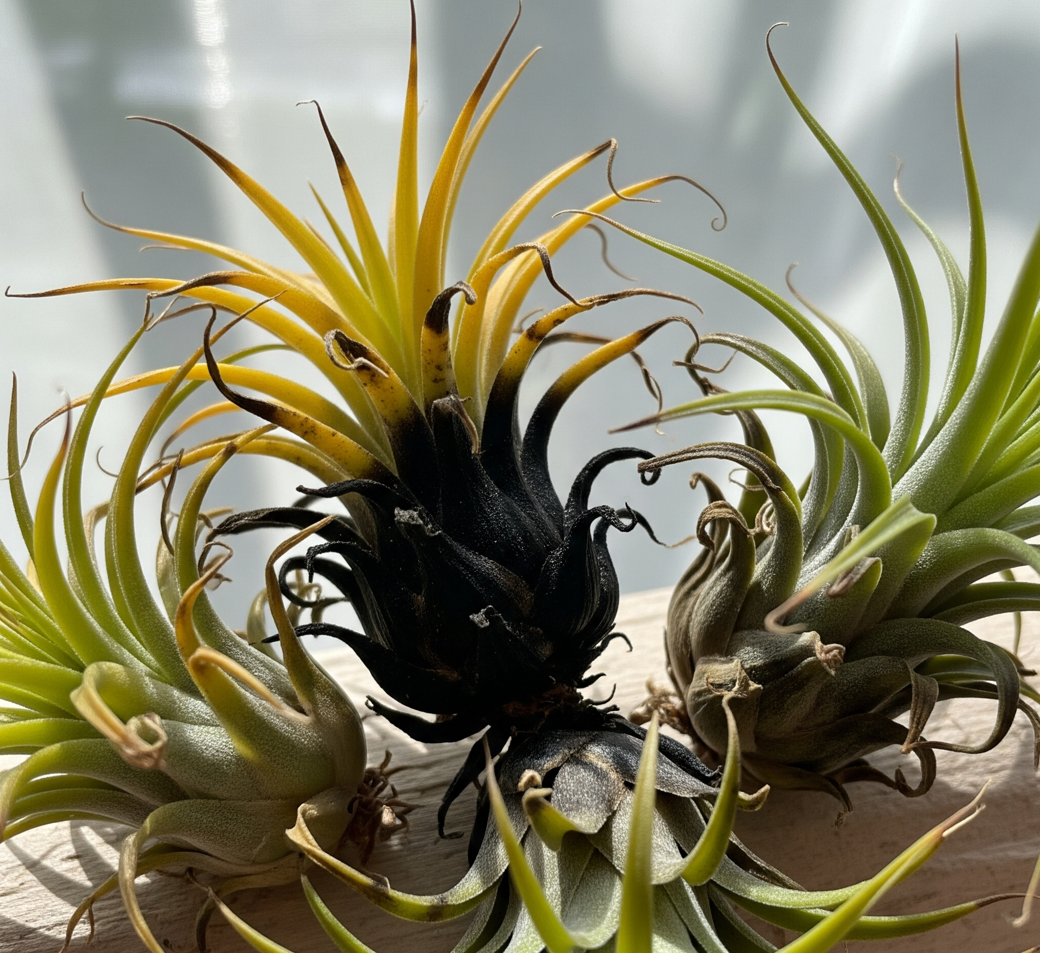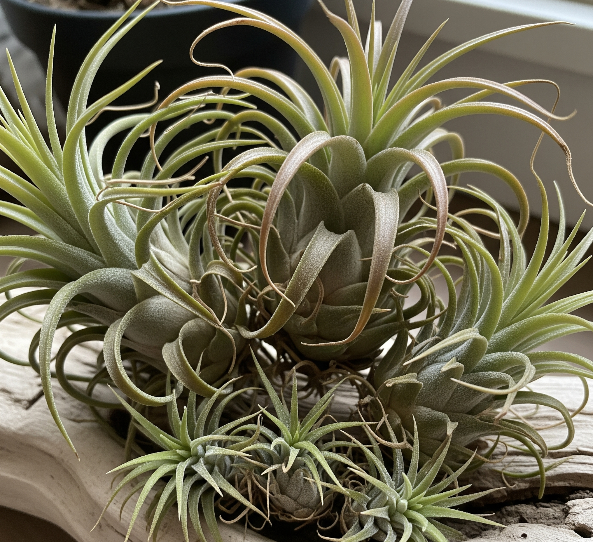 - Light: Air plants thrive in bright, indirect sunlight. A location near a window with plenty of light, but away from direct afternoon sun, is best. If natural light is limited, they can also grow under fluorescent lights. Be cautious with direct sunlight, as it can dry them out and harm them. Adjust their position to ensure they get the right amount of light for healthy growth.