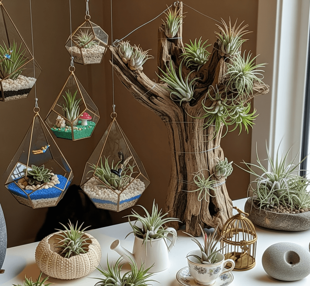 Growing Tillandsias allows for creative displays since they don’t require soil. These air plants can be arranged in various ways, such as in hanging terrariums or as centerpieces, and can be clustered or placed in unique containers to enhance their beauty. Experimenting with different heights and orientations adds visual interest, showcasing personal style while nurturing these resilient plants.