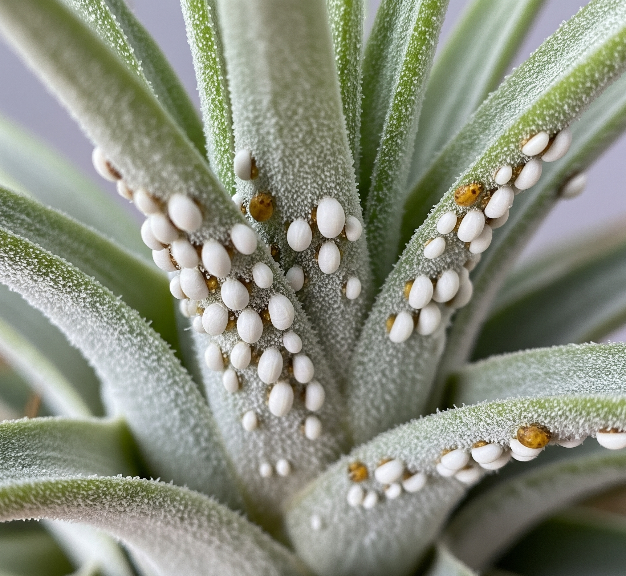 These pests can sometimes infest Tillandsias, causing damage to the plant by sucking out its sap and leading to a decline in health. You can often remove them by gently scraping them off or dabbing them with a cotton swab dipped in rubbing alcohol. Regular inspections can help prevent severe infestations, and it’s essential to act quickly to safeguard your plants from their detrimental effects.