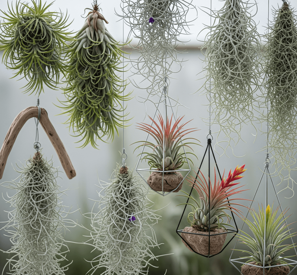 Use a simple wire hanger or a specially designed air plant holder to hang them securely and create a beautiful vertical garden that not only saves space but also adds a unique aesthetic appeal to your indoor or outdoor area.